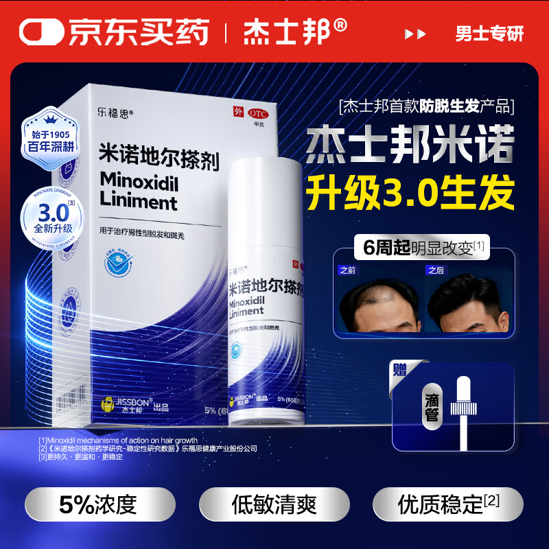 领 杰士邦首kuan 5%米诺地尔搽剂 60ml*1瓶, 9