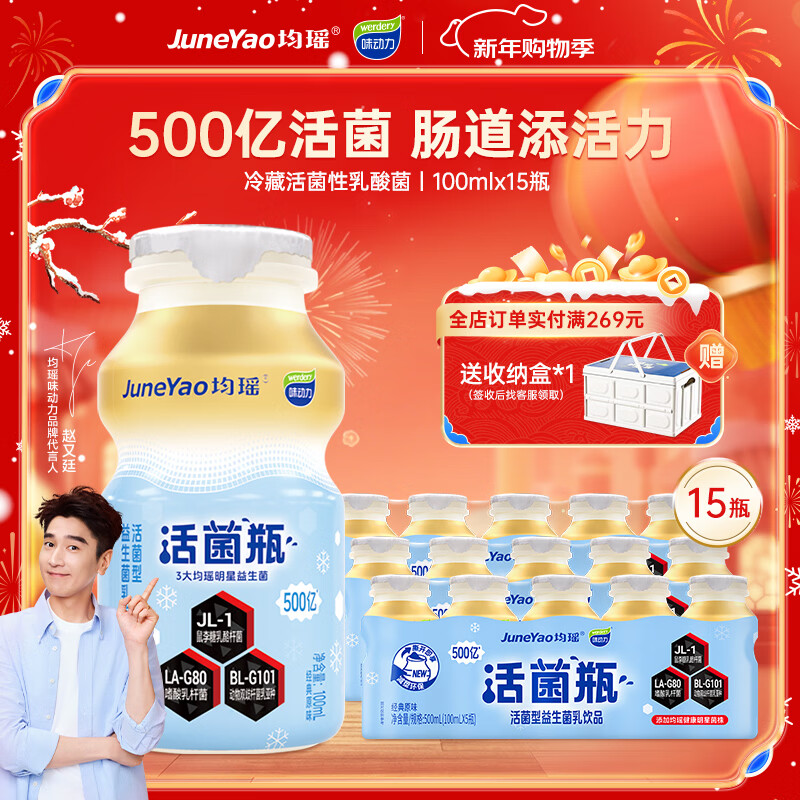 黑五200-20奍 味动力冷藏 活菌瓶饮料100ml*5瓶*3排 弹