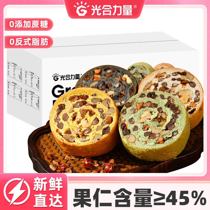 如有200-20黑五奍 光合力量 全麦车轮卷车轮坚果仁面包800g/箱 凑