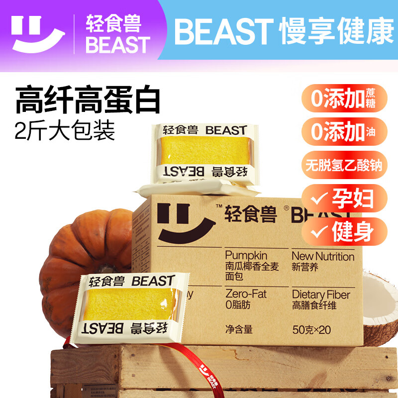 轻食兽南瓜全麦代餐面包2斤吐司1000g 5首单,砸79-15奍后5.57