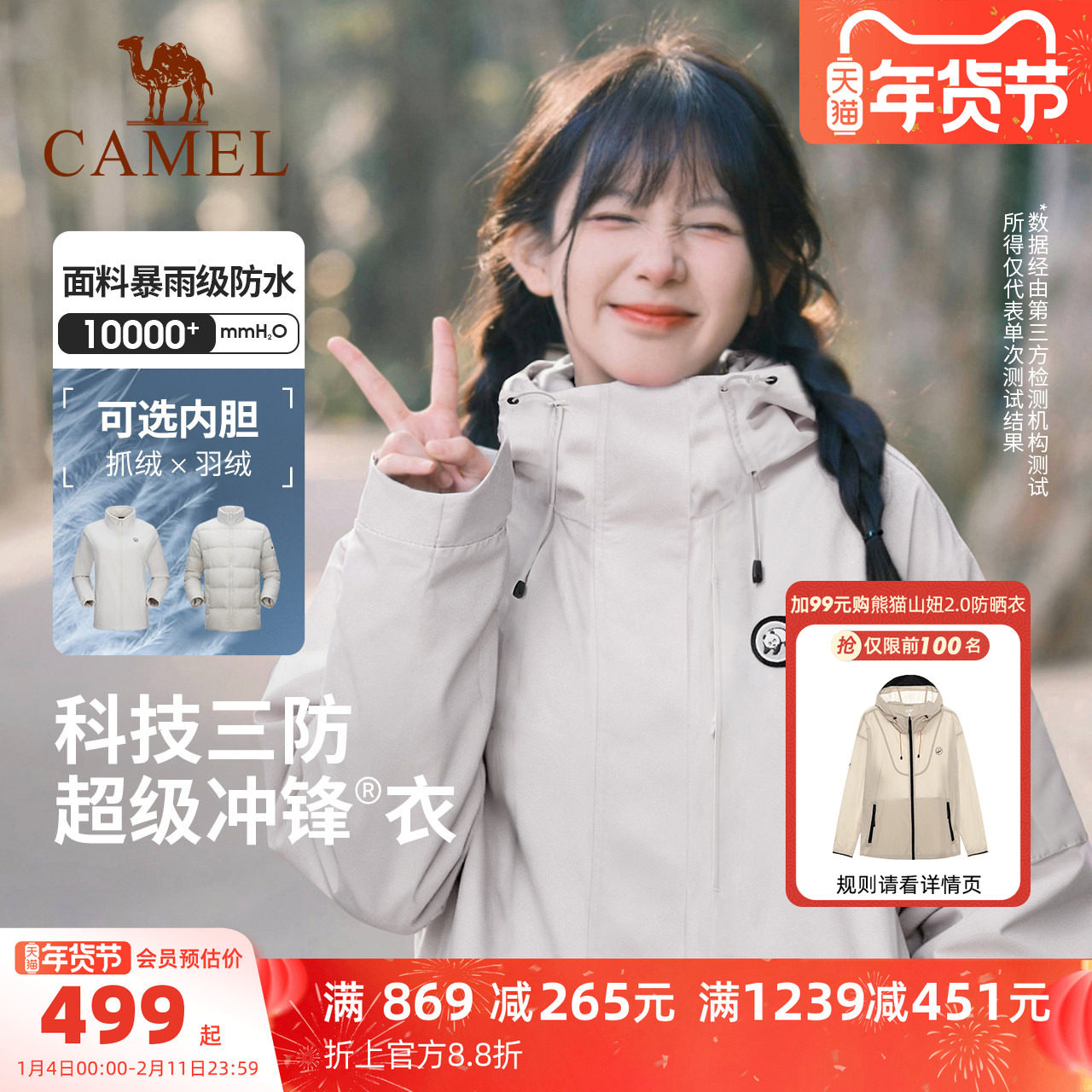 领900-70运动奍 / 骆驼 熊猫羽绒三合一冲锋衣 弹9.4折立减桃金币