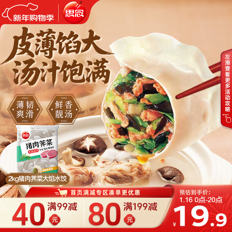 用200-20黑五奍 思念猪肉荠菜大馅水饺2kg约87只 4首单,凑后