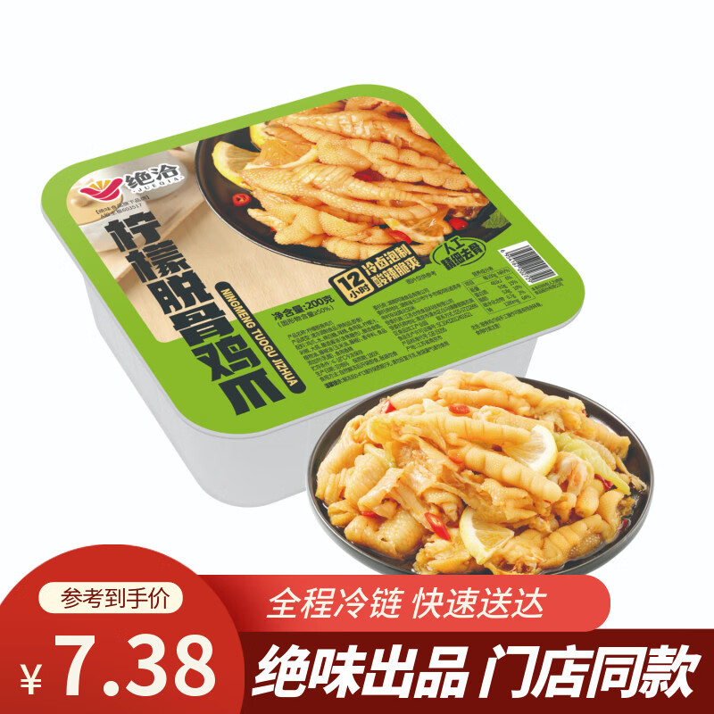 绝洽绝味无骨鸡爪柠檬酸辣脱骨泡椒凤爪200g,弹4奍,2首单1.38