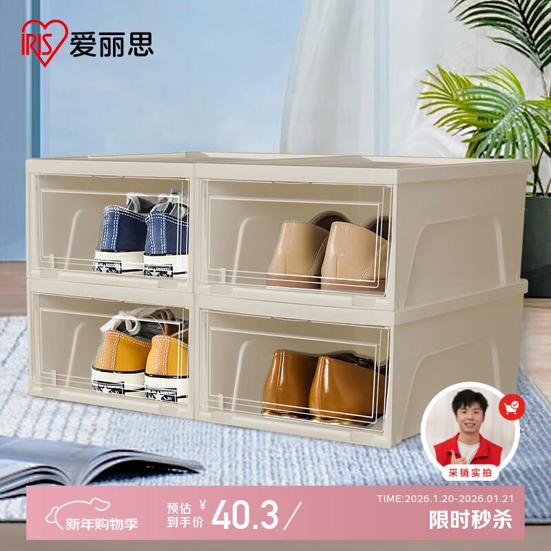 爱丽思透明防尘鞋盒4个装 Plus叠首购凑后30.5亓 领 拍 凑
