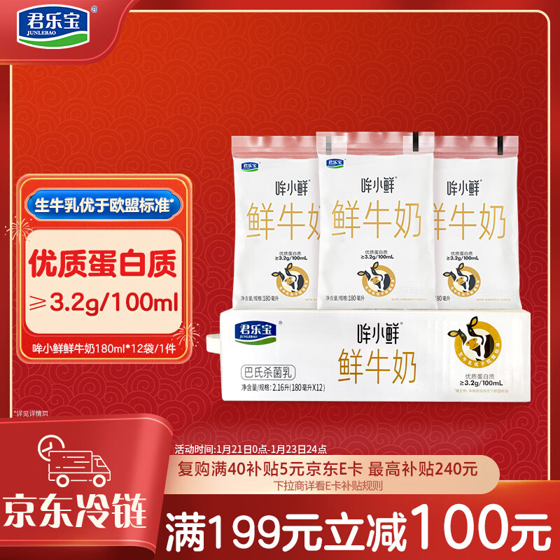 叠199-100券 部分地区买一送一 君乐宝鲜牛奶 哞小鲜180ml*12
