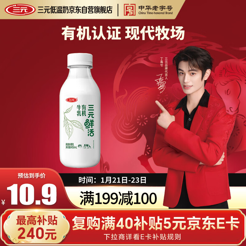 地区价2首单3.9 亓 三元鲜活 有机牛如450mL/瓶