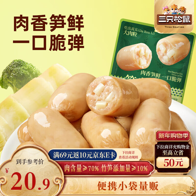 地区价 6.5 三只松鼠笋尖肉肠原味500g袋装