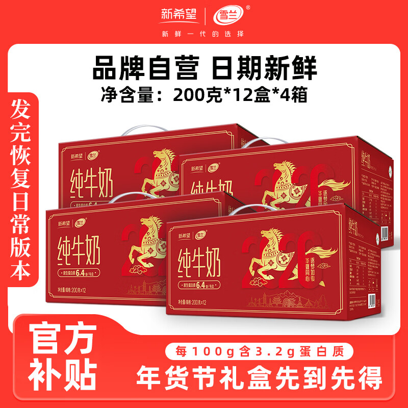 新希望 纯牛奶200g*12盒*4箱 77亓,发12月日期 折19.2/