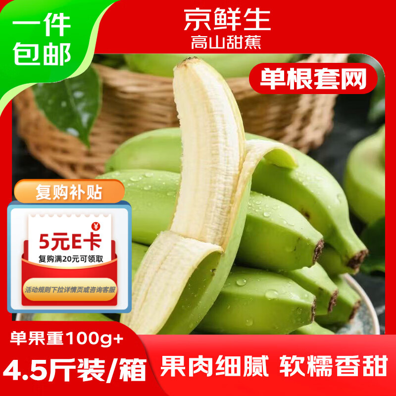 京鲜生 广西甜香蕉净重4.5斤 14.9亓自营包邮,新客减2亓 *才2.