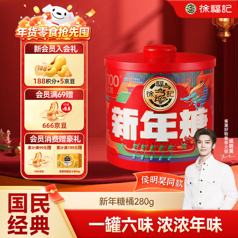 1. 徐福记 新年糖罐280g 2. 徐福记 酥心糖罐300g 任选2