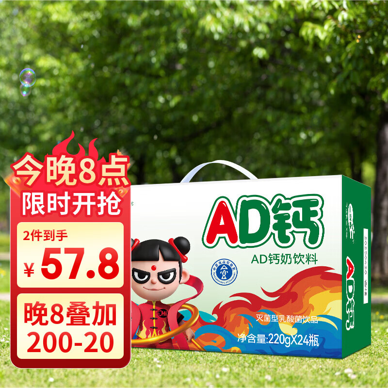 三剑客 AD钙奶原味220g*24瓶 领 拍 29.9亓 云费,新客再减2