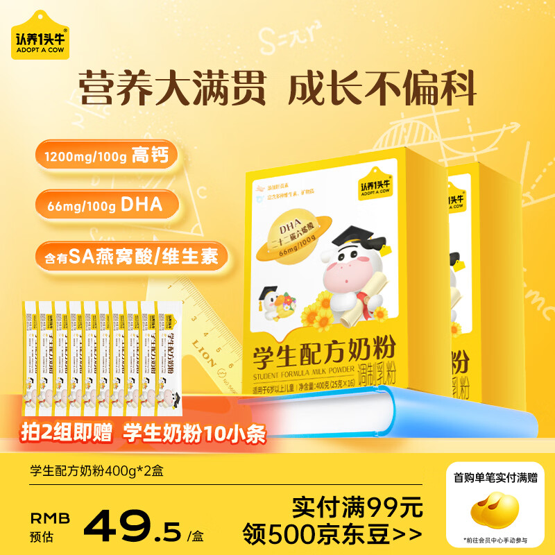 先领109-30补贴卷 认养一头牛 儿童奶粉400g*2盒 69亓,独