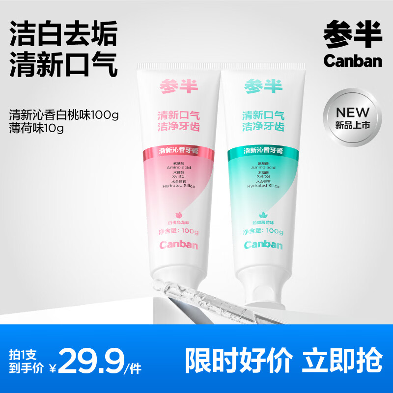 领9-5券 参半酵素牙膏100g*2支 9.9亓