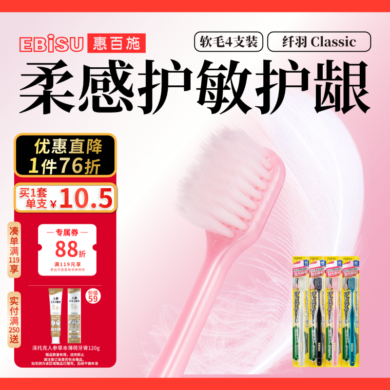 惠百施纤羽护龈呵护牙龈软毛牙刷4支