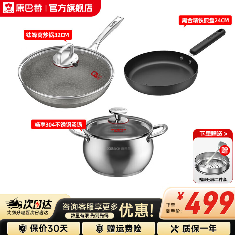 先领5折补帖卷 康巴赫 钛蜂窝炒锅组合5件套 249.5亓,不挑炉具