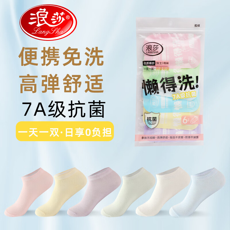 浪莎 棉混纺日抛短筒袜 6双 16.9亓,男女可选 赠云费险