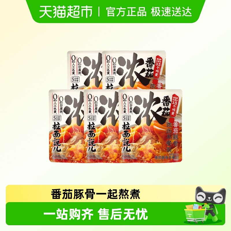 部分地区有补贴40.6 拉面说儿番茄豚骨浓汤早餐面170g*5袋 tao金