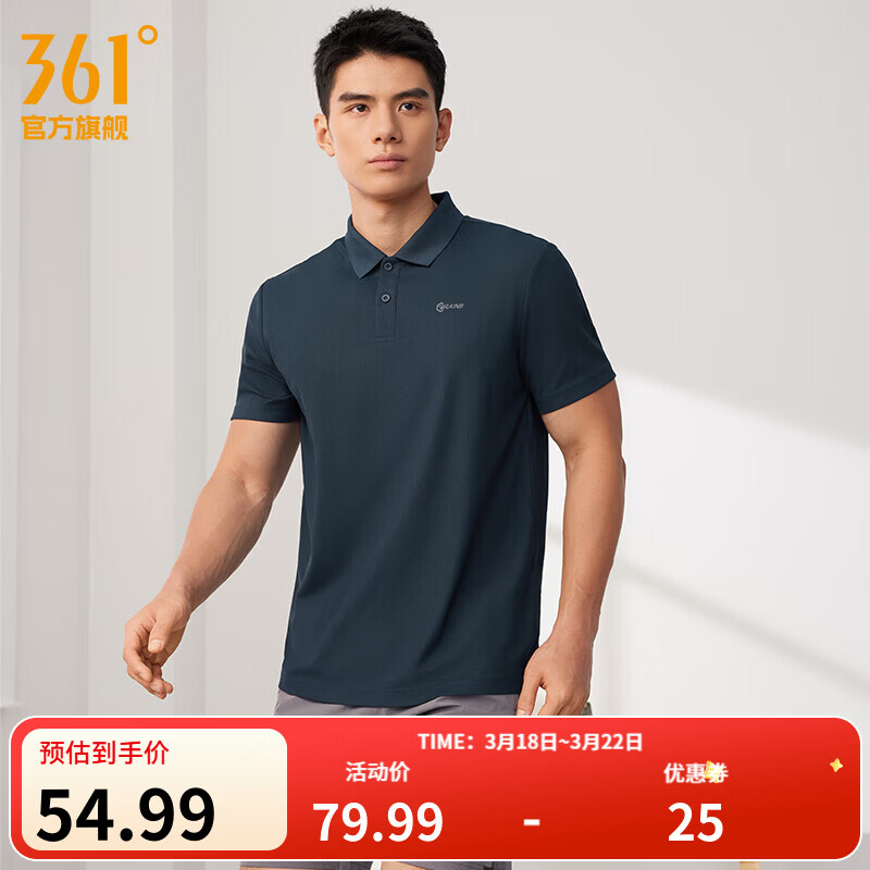 先页面领5折补帖卷 361度 男女休闲翻领Polo衫 39亓,多色多码
