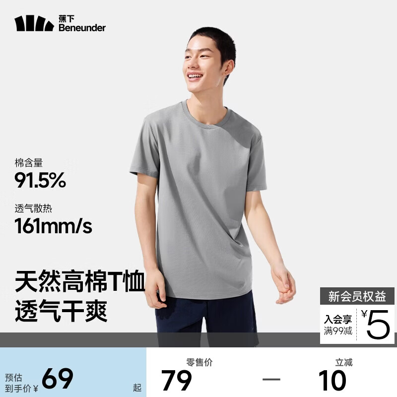 先页面领5折卷 【自营】蕉下 纯棉男短袖T恤 54.9亓 云费,Plu