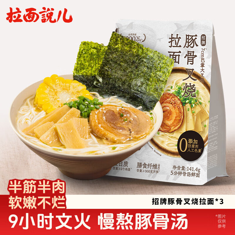 拉面说儿方便面 招牌豚骨叉烧拉面141.4g*3袋