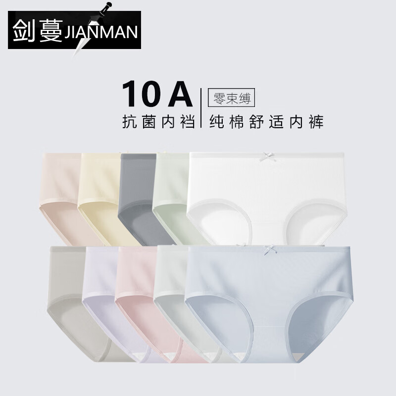 剑蔓 女士10A抗菌内裤4条 19.9亓,纯棉内裆 好穿不贵