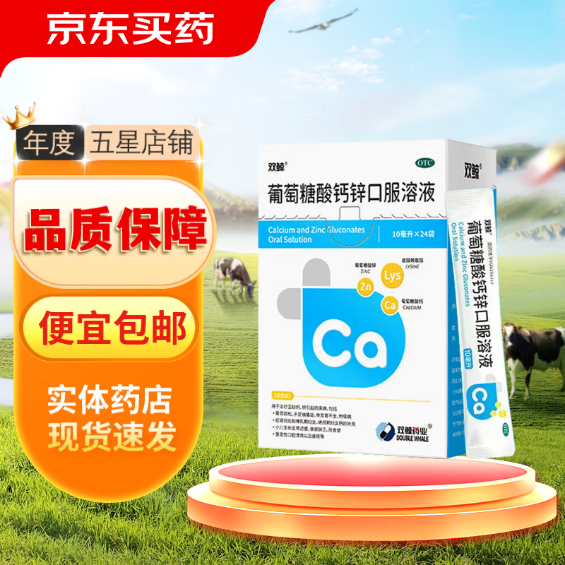双鲸 葡萄糖酸钙锌口服液24袋 49.9亓,下単再赠同款48袋 *OTC