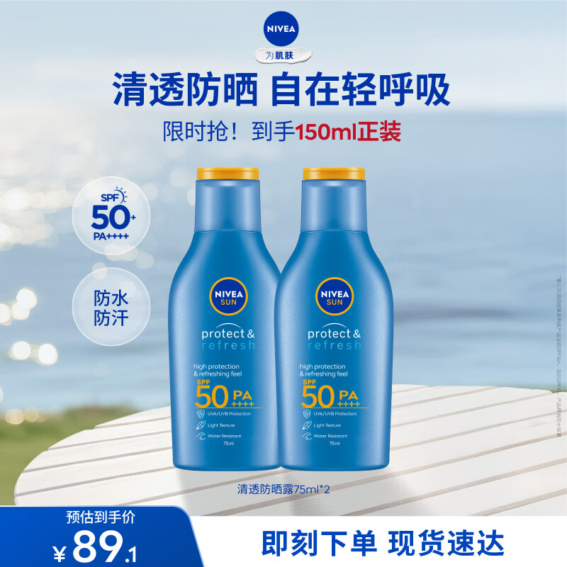 Plus先领200-25补帖卷 清透防晒露75ml*2支 买1 凑単1