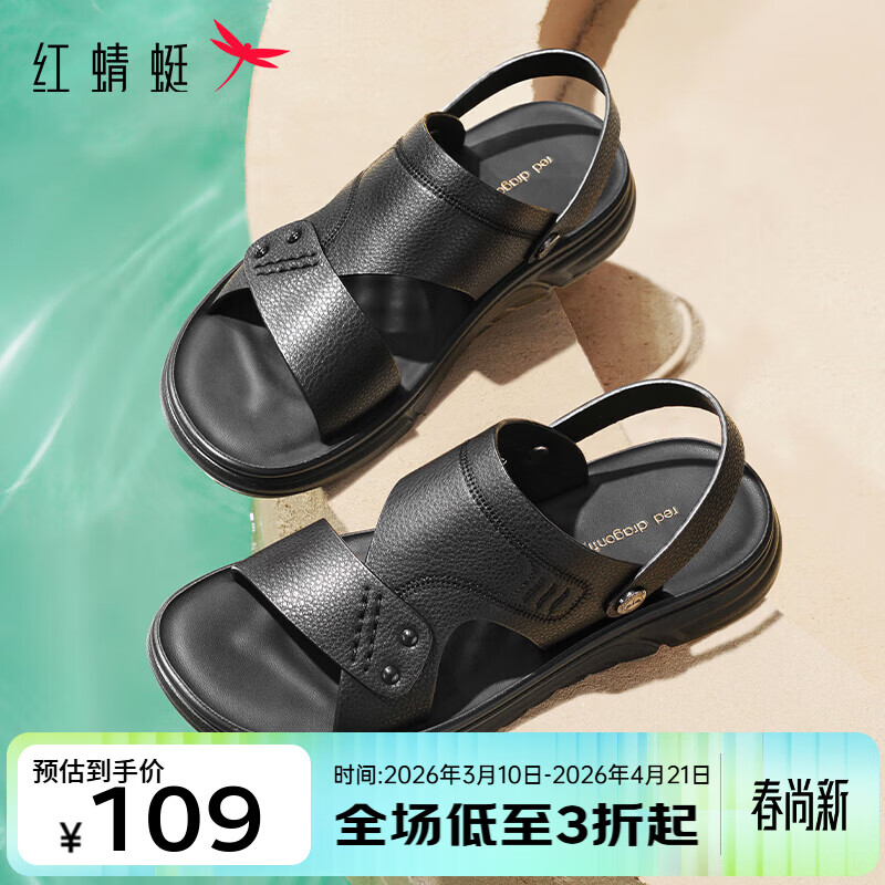 红蜻蜓 男软底沙滩牛皮凉鞋