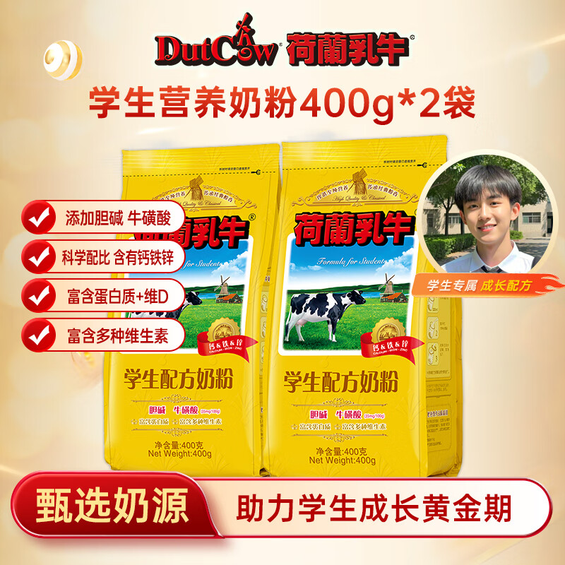 荷兰乳牛 学生奶粉400g*2袋 39.9亓,有效期到7月中旬 *益智配