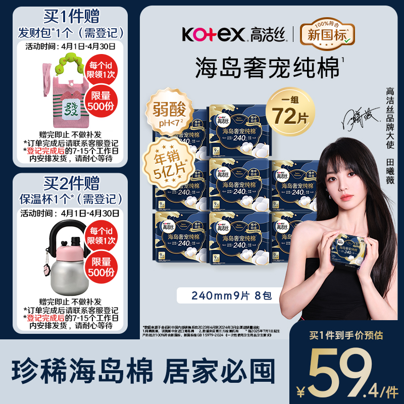 高洁丝 海岛奢宠卫生巾72片 59.4亓自营包邮,plus56.4亓 *