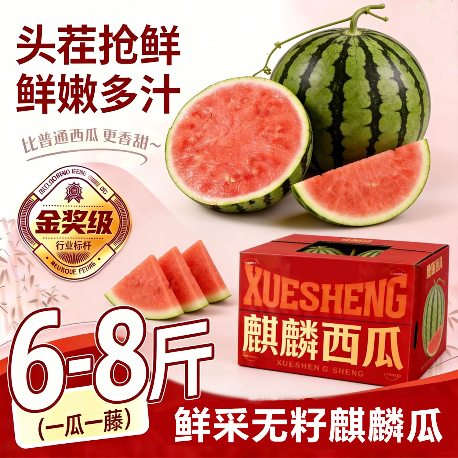 万邦 无籽麒麟西瓜 6斤/个 24.9亓,折4.1/斤 源头直发 *皮薄