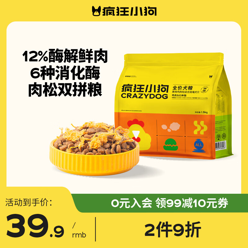 百亿补贴-加倍补(需从app进会场加购) 疯狂小狗拼派肉松狗粮1.5k