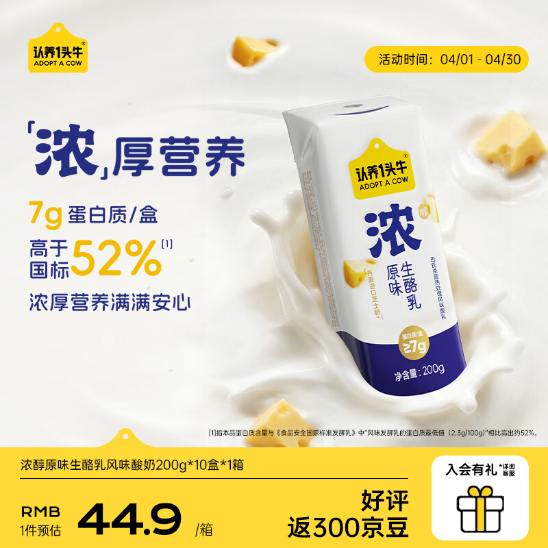 先领59-10卷 认养一头牛 生酪乳浓酸奶10盒 买2件79.7亓,P