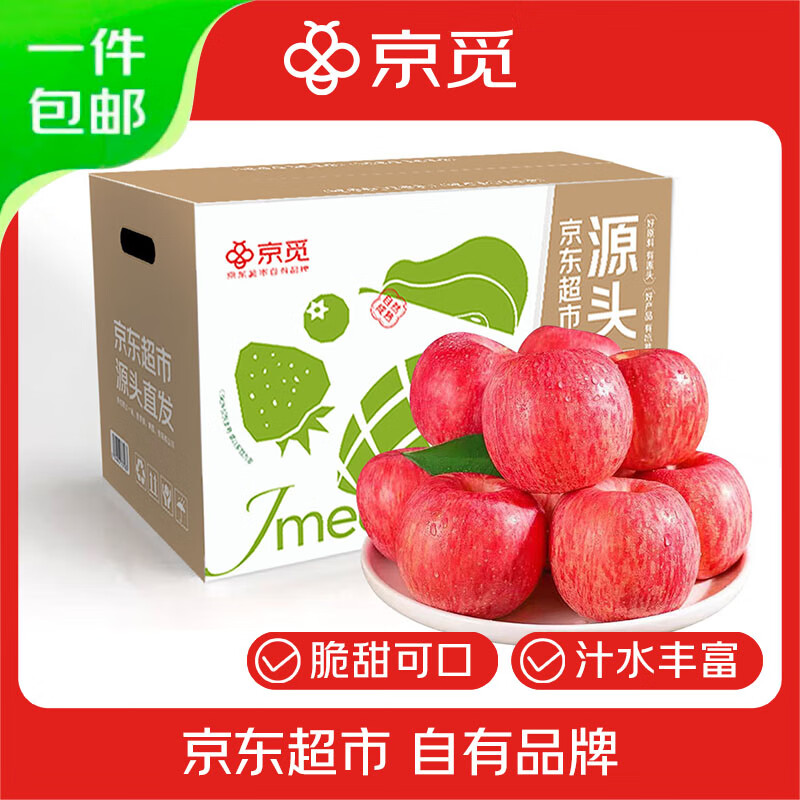 京觅 烟台红富士苹果净重4.5斤 23.8亓自营包邮,单果75mm *京