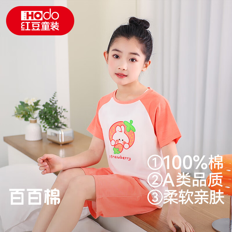 先领2张卷 红豆 儿童纯棉短袖短裤套装 26.8亓,100%棉 给娃