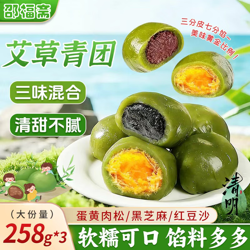 如有200-20 黑五奍 邵福斋 艾草青团 三口味774g 砸5奍,