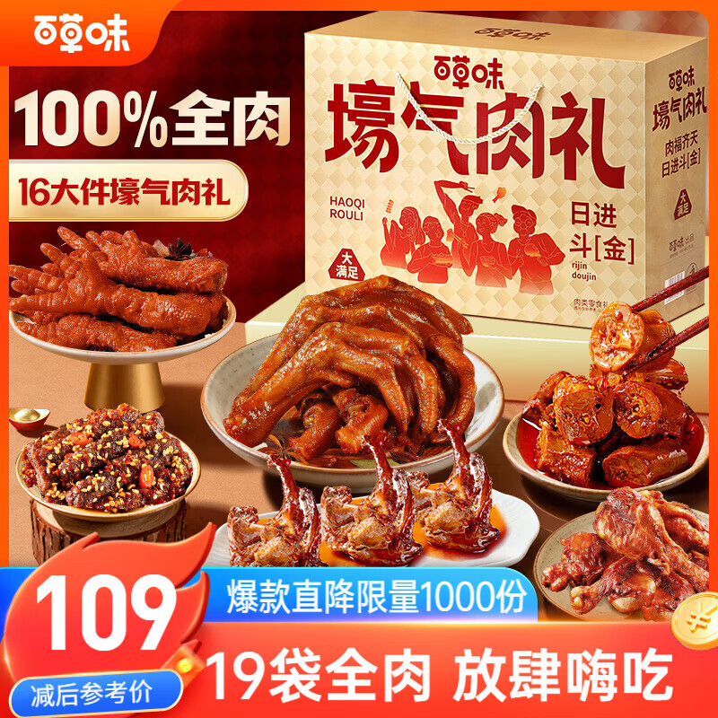 百草味 壕气全肉零食1416g 69.9亓自营包邮,日常89亓 *鸡鸭猪