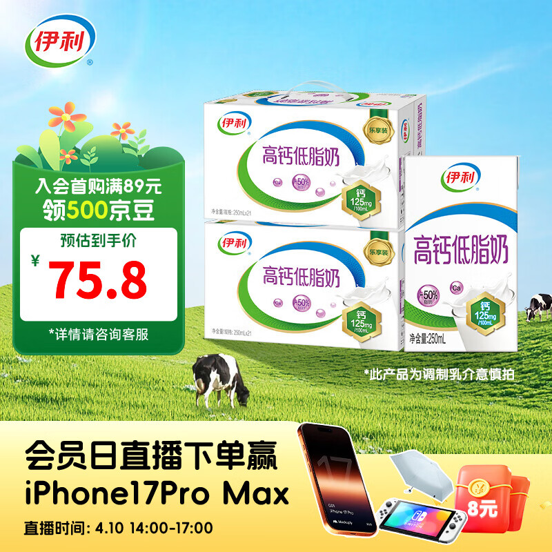 先领99-30补帖卷 伊利 高钙低脂牛奶21盒*2箱 65.7亓,才1