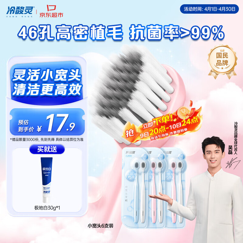 【自营】冷酸灵 宽头牙刷6支 17.9亓 U,plus无限包邮 *赠牙刷