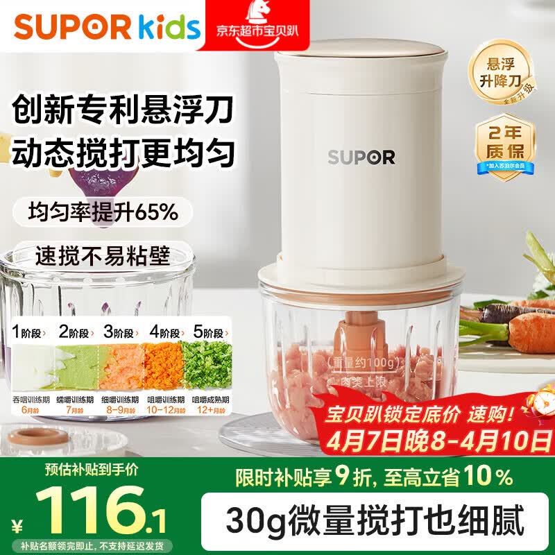 苏泊尔(SUPOR)婴儿辅食机 4叶悬浮刀单杯