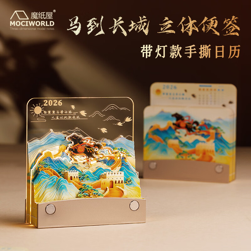 魔纸屋马到长城2026年3D立体日历手撕便签 小夜灯