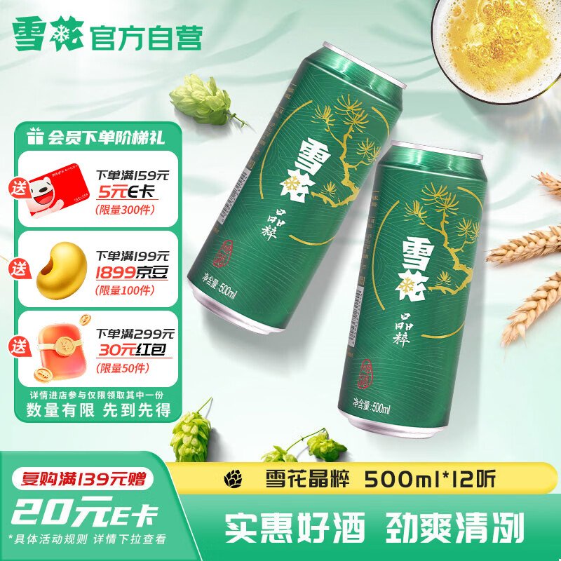 领哈尔滨95折消费券 领 领 雪花啤酒晶粹 500ml*12听 Pl