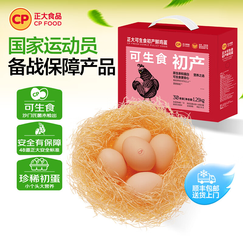 领16-5券 正大可生食初产蛋30枚 1.29kg 拍下24.9亓