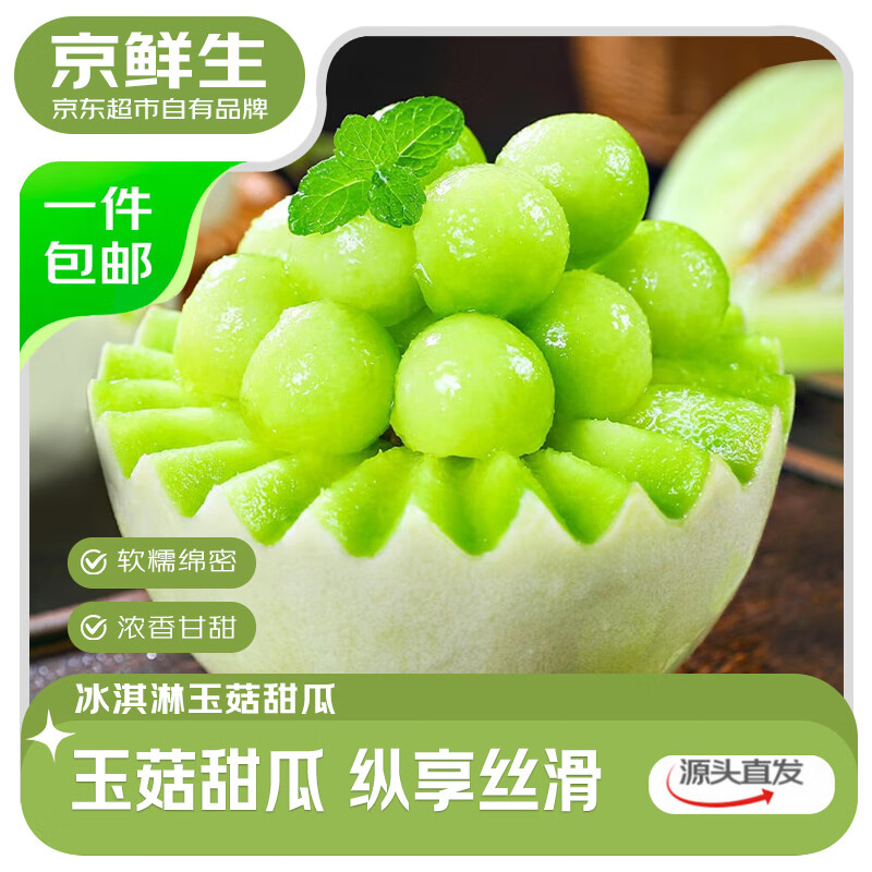 京鲜生 玉菇甜瓜净重4.5-5.5斤 22.9亓自营包邮,共2粒装 *软