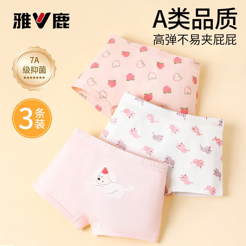 雅鹿 女童棉质平角裤3条装 领 拍 17.9亓,7A抑菌 高弹不易勒