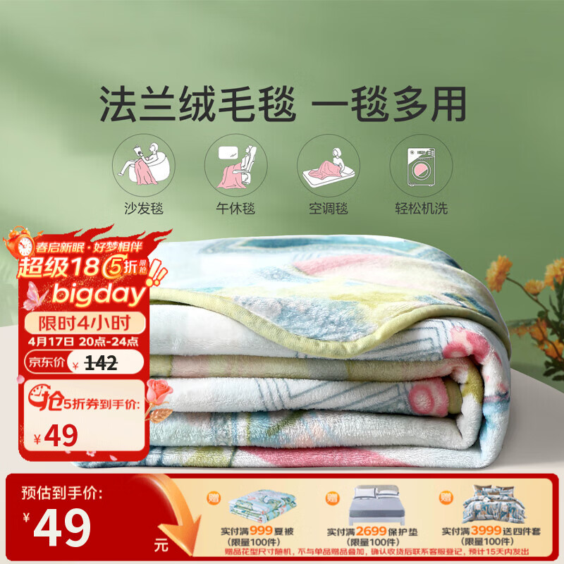 49元 法兰绒盖毯150*200cm