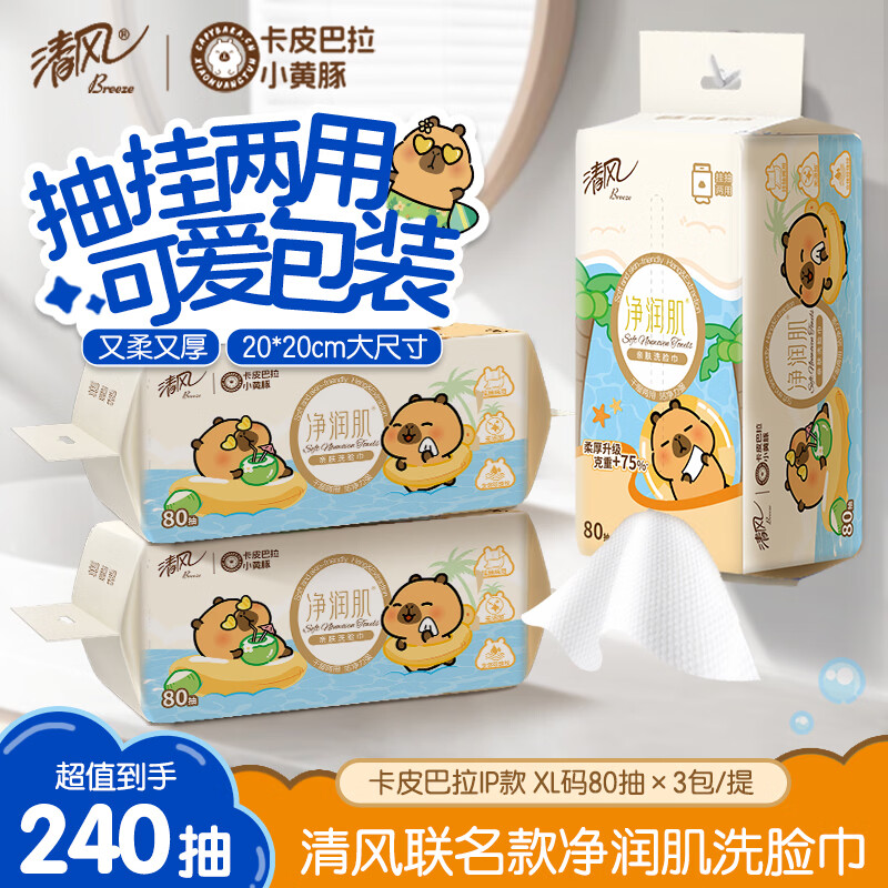 如有69打8折奍 5首单 凑200-25后12.42反10津贴 清风洗脸巾