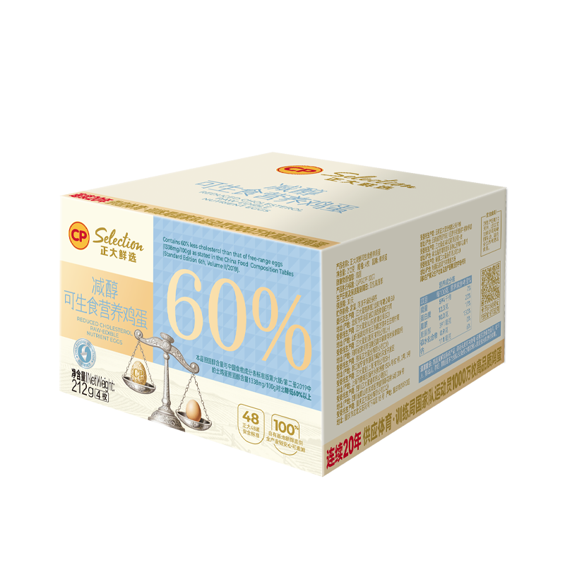 正大食品CP减醇可生食鲜鸡蛋 4枚212g,6.9