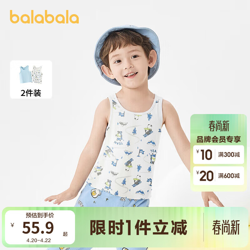 领100-22券 巴拉巴拉儿童背心2件装 浏览弹9折限时立减 拍2件80