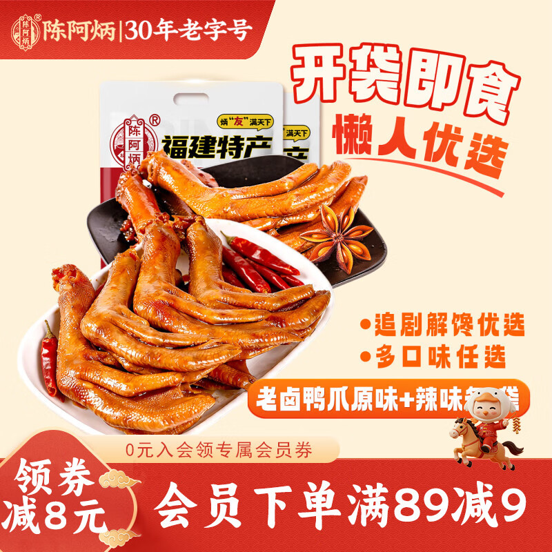 陈阿炳 老卤鸭爪216g*2包 领 拍 35.4亓,到手16个 开袋即食